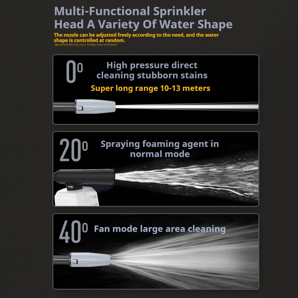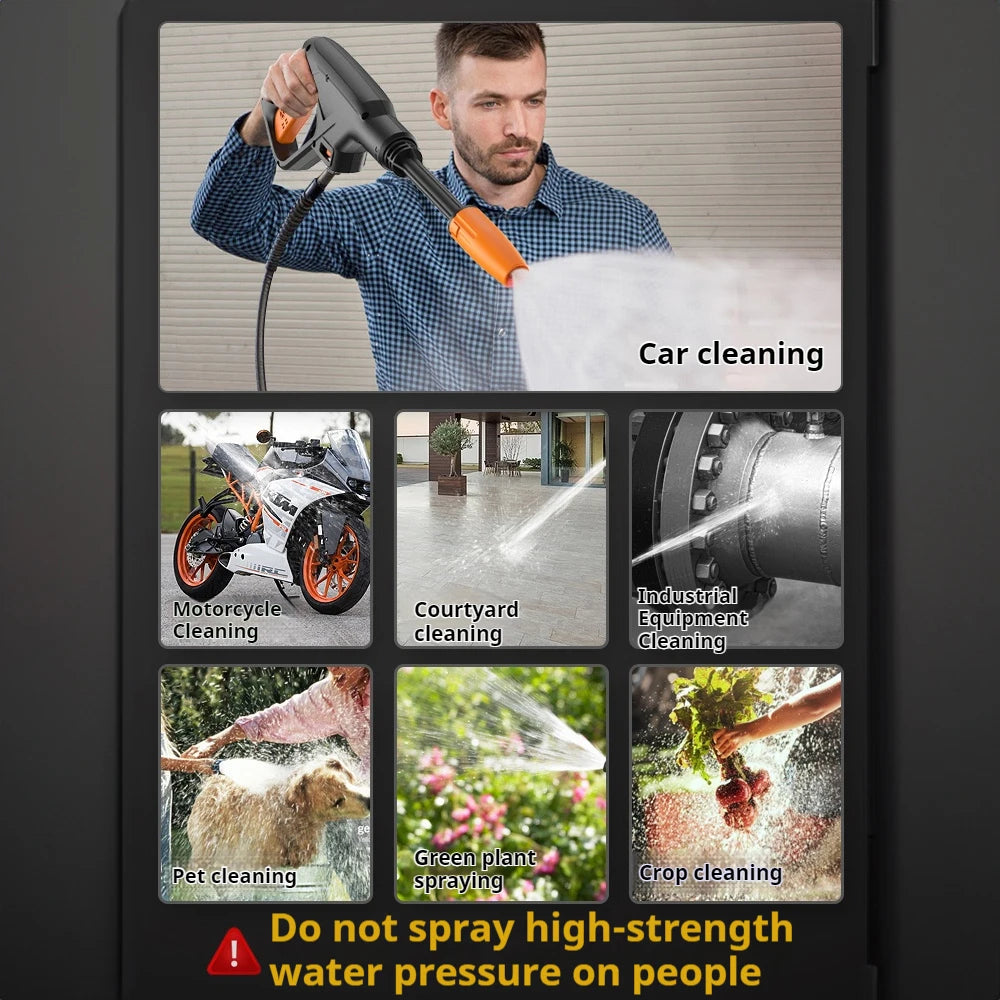 Nettoyeur haute pression portable sans fil, idéal pour le lavage de voiture, moto et terrasse. Équipé d’une batterie 20V 4.0Ah, il offre une bonne autonomie et un jet puissant. Compact, léger et facile à utiliser, il inclut un pistolet de pulvérisation, un tuyau d’aspiration et une bouteille de mousse pour un nettoyage efficace partout.